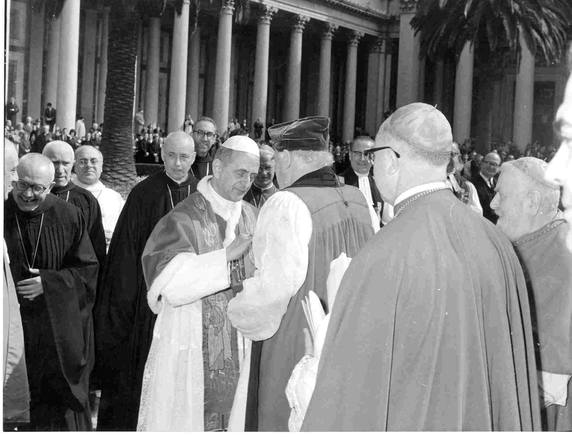 Gallery ID: 478 + more detailsPope Paul VI places his episcopal ring on the finger of the Anglican Archbishop of Canterbury Michael Ramsey (24 Mar. 1966)